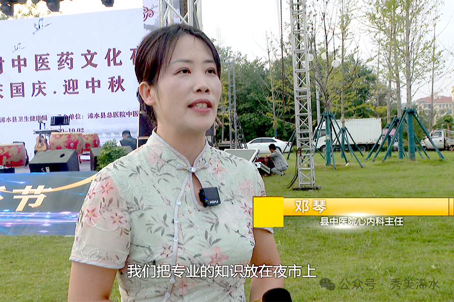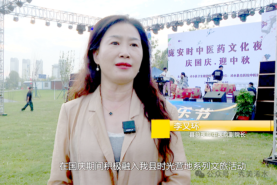 县总医院中医院副院长 李又环:在国庆期间积极融入我县时光营地系列文旅活动,旨在通过中医药进夜市为民众提供便捷的健康咨询和体验,让更多的市民朋友了解中医药、体验中医药、信赖中医药,共同推动我县中医药文化的传承和发展而努力奋斗。