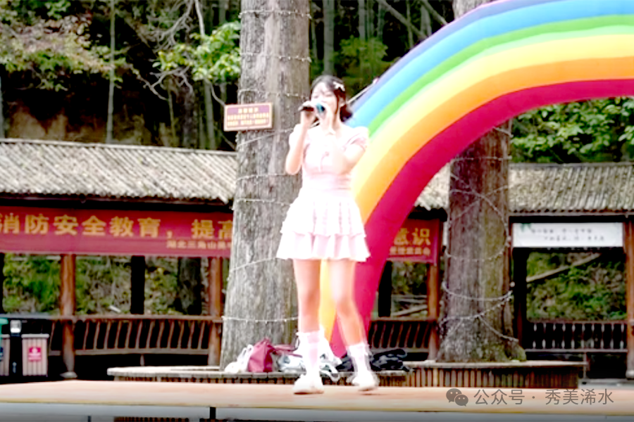 为迎接国庆与中秋的双重喜庆,三角山景区精心策划了一系列主题鲜明、互动性强的文旅活动,邀请了专职表演团队在景区大门进行歌舞表演。