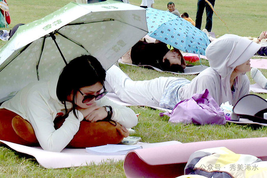 演职人员 何思妍:今天准备了十几个节目,有歌舞表演还有唱歌,大合唱等等,我是第一次来,这边的空气很清新,非常放松。