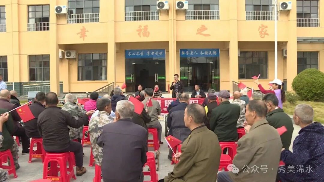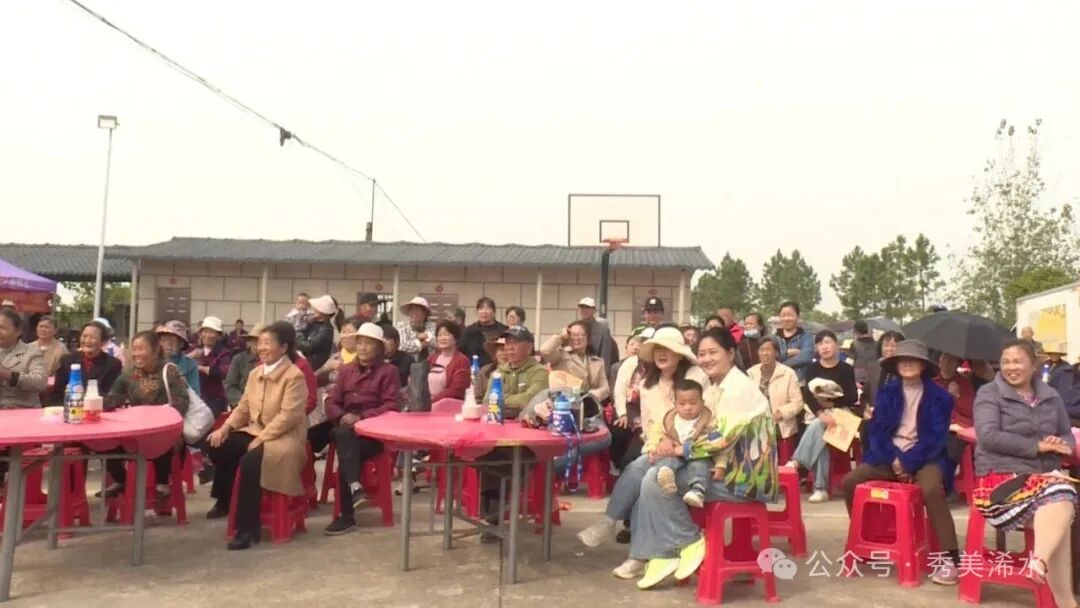 活动现场,《打腰鼓》、歌曲《阿爸阿妈》、戏曲《彩蓬船》、游戏《乒乓球大作战》等由村内文艺队、学校师生和村民精心准备的节目轮番登场,现场鼓掌声不断。活动中,县新时代文明实践中心为村民带来了小品《抵制高价彩礼 推进移风易俗》和鼓书《扫黄打非正气扬》文艺节目,将文明新风送到村民中间,受到村民热烈欢迎。村里的志愿者还为老人提供义剪、义诊服务,文艺演出结束后,老年朋友欢聚一堂共享“敬老宴”,现场洋溢着温馨祥和的氛围。