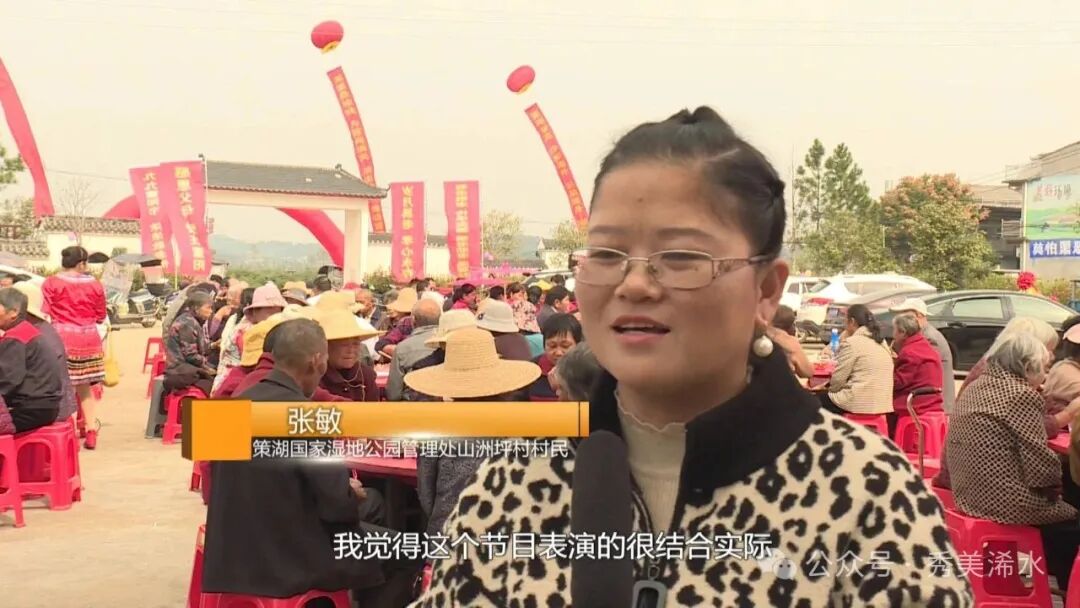策湖国家湿地公园管理处山洲坪村村民 张敏:抵制高额彩礼,我觉得这个节目表演得很结合实际,教育意义蛮好。我以后也发动我身边的朋友抵制高额彩礼。