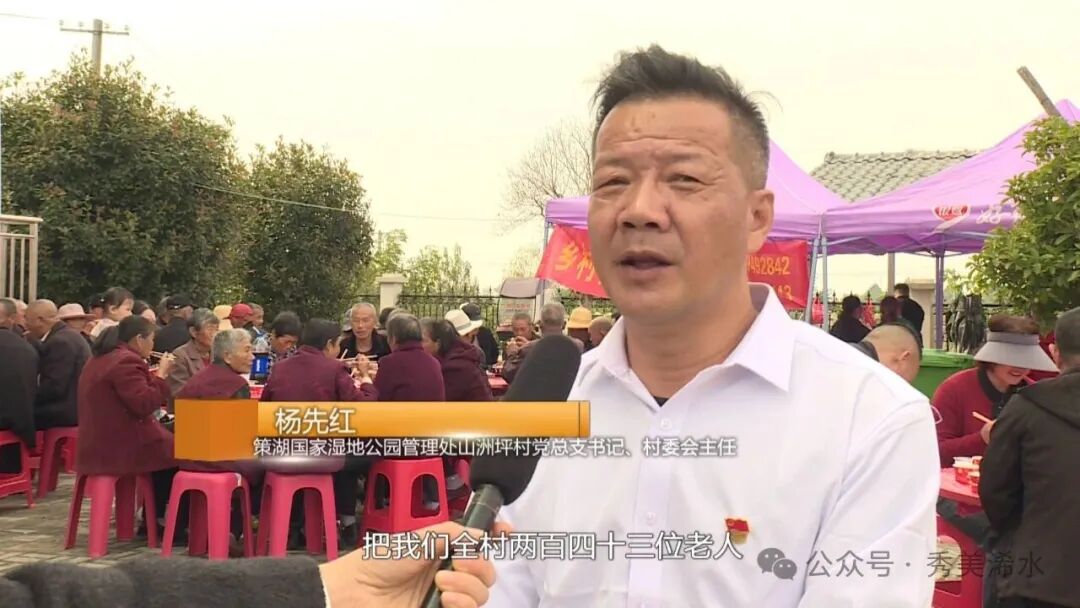 策湖国家湿地公园管理处山洲坪村党总支书记、村委会主任 杨先红:我们山洲坪村新时代文明实践站把全村两百四十三位老人邀请来参加尊老爱老重阳节的活动,营造了尊老爱老的浓厚氛围。
