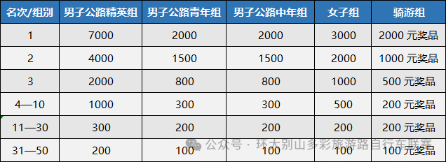 (1)比赛将对所有组别参赛选手进行累计积分排名,各单站比赛在规定时间内完成比赛的运动员获得相应积分。(2)年度个人总积分总排名以单站比赛积分累加,如果累计得分相等,按以下优先级逐级判定最终排名:①完赛站次更多 者靠前,②最终站名次排名。(3)各站比赛中,组委会将根据赛道情况,适时增设冲刺赛点和爬坡赛点,根据参赛运动员在对应赛点的成绩排名给予相应积分奖励。(4)各站比赛完赛后,年度个人总积分排名第一的运动员将获得黄色领骑衫,若年度总积分排名第一运动员未到场,黄色领骑衫将按照个人总积分排名顺延颁发,以此类推。(5)各站比赛均完赛选手年度总积分“+5”。例如取得三站冠军积分为:25+25+25+5=801.仅限以车队、俱乐部或协会名义参赛的团队具备奖项评选资格。参赛团队须确保报名信息中所有队员所属队名完全一致,且报名成功后,组委会原则上不再接受车队队名的任何修改申请。2.分站赛“卓越组织奖”以该站赛事实际参与检录并成功上道的人数为排名依据(含未完赛选手,以官方检录单记录为准)。3.同一团队在同一分站赛中仅可获评一次卓越组织奖。若因数据统计重叠导致同一团队同时符合多个奖项条件,则奖项顺延至下一顺位符合条件的团队。年度“卓越组织奖”评选不受团队籍贯限制,以所有分站赛中该团队的累计检录上道人次为排名标准(即各分站赛实际参与检录并上道人数的总和)。| 经费与接待条件