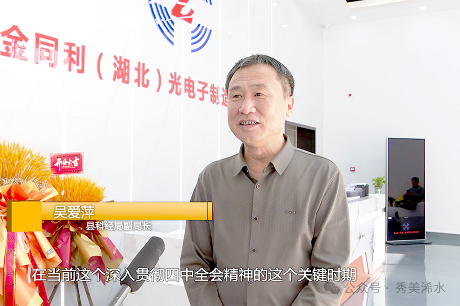 县科经局副局长 吴爱萍:在当前深入贯彻四中全会精神的关键时期,服务企业是科经局的主责主业,为迅速把金同利做大做强,我们要加强与中国信科集团的服务对接,订单对接,下一步,将会同县人社局、清泉镇把人员迅速招满,满负荷生产。