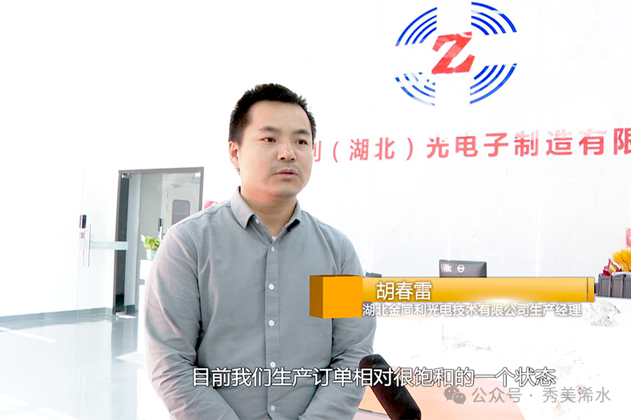 湖北金同利光电技术有限公司生产经理 胡春雷:武汉周边的光电产业比较发达,我们可以更快速地满足客户需求,缩短物流时间,充分利用浠水富余劳动力,政府招商引资环境优厚,打通了中国信科的产业合作通道。