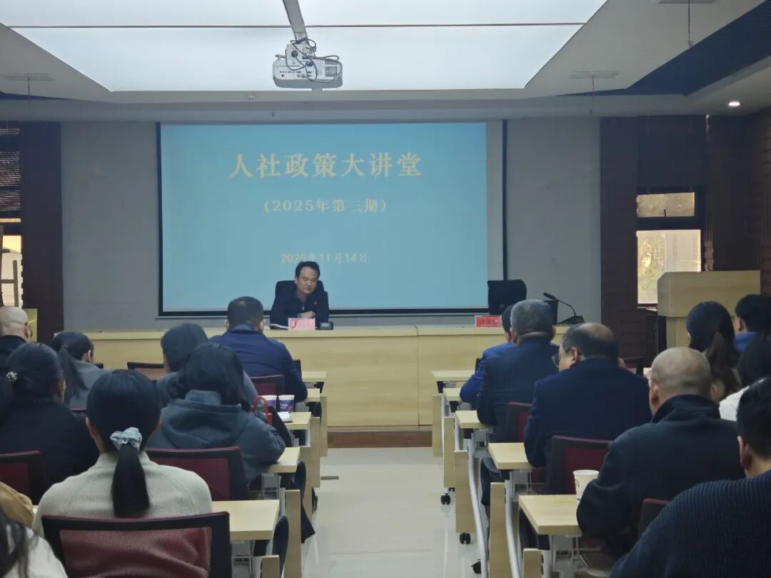 为深入贯彻落实“干部素质提升年”部署要求,进一步锻造业务精、服务优的人社干部队伍,推动人社政策精准直达基层、更好惠及民生,11月14日,第三期“人社政策大讲堂”如期举行。局机关全体干部职工及各二级单位班子成员全员参训,沉浸式学习人社四大重点领域政策内容,为提升人社服务质效夯实专业基础。