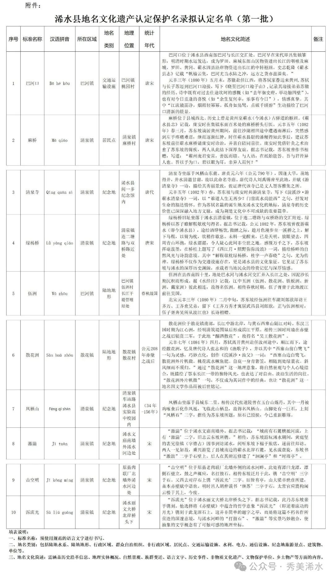 附件:浠水县地名文化遗产认定保护名录拟认定名单(第一批)