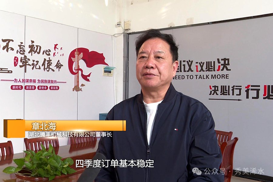 湖北腾丰机械科技有限公司董事长 章北海:当前,四季度订单基本稳定,全年生产销售目标有望如期完成,预计今年总产值2.5个亿以上,同比增长20%,同时我们正在为明年的生产、研发、销售进行布局,明年的工作已经全面展开。