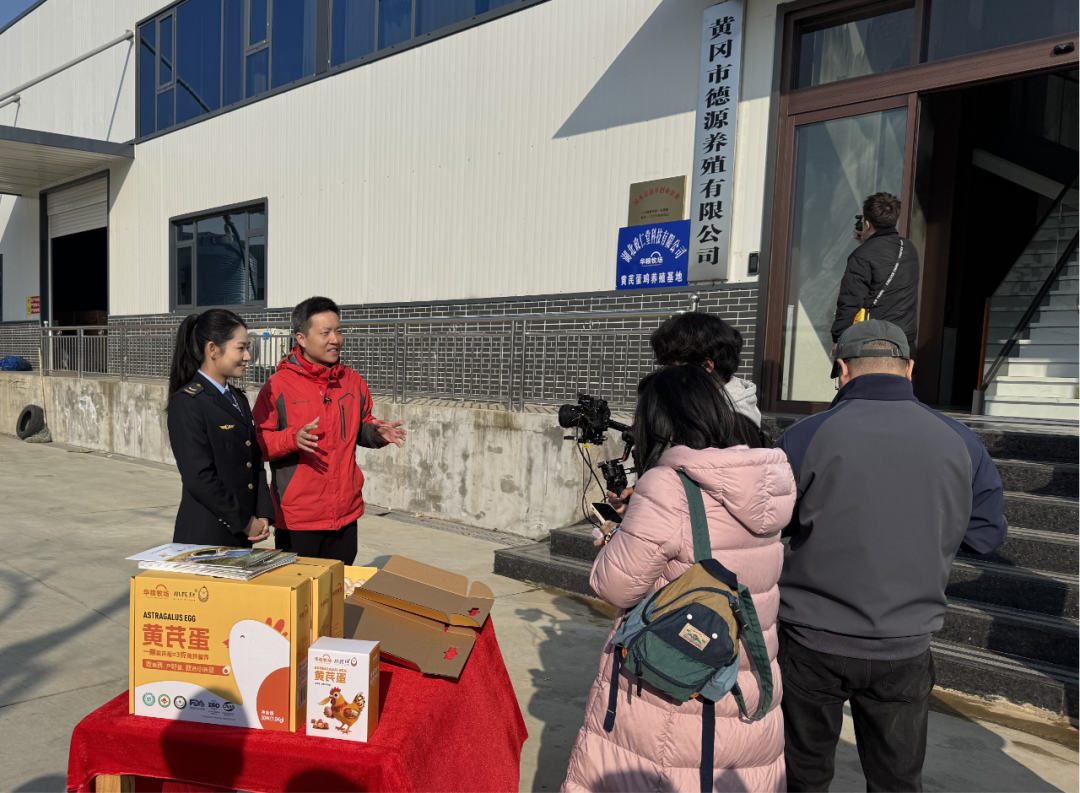 上午9:30,直播活动在黄冈市德源养殖有限公司(浠水县散花镇)拉开序幕。湖北省电视台著名主持人邓吉与黄冈市市场监督管理局的邱星星引领大家参观了公司数智生态蛋鸡养殖车间,以第一视角呈现蛋鸡黄芪特色无抗养殖模式,吸引了众多关注食品安全和绿色养殖的观众。