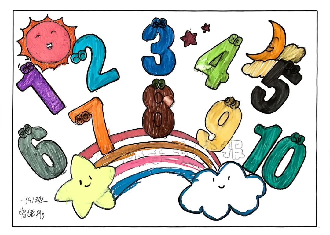 给数字画上笑脸、装上小眼睛,彩虹当背景,让1-10变成“快乐家族”,把数字画活了!
