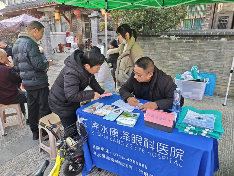 活动现场还同步开展了义诊与政策咨询专区。县中医院、康泽眼科、蕲水轩艾灸馆的专业人员为居民提供免费健康检查与咨询;人保财险公司及县镇医保工作人员细致解答参保、报销等疑问,发放宣传资料,真正实现“服务送上门、政策讲到心”。