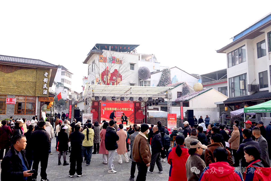 除了文艺演出,活动现场还搭建起一站式便民服务平台。县中医院、洗马镇卫生院、康泽眼科医院等医疗机构为居民提供义诊,内容涵盖血压血糖测量、眼底检查、艾灸体验等项目。同时,医保局工作人员联合保险公司志愿者组成政策宣讲队,发放宣传折页5000余份,并现场手把手指导群众通过手机办理异地就医备案、医保缴费等业务,累计服务群众超过500人次。