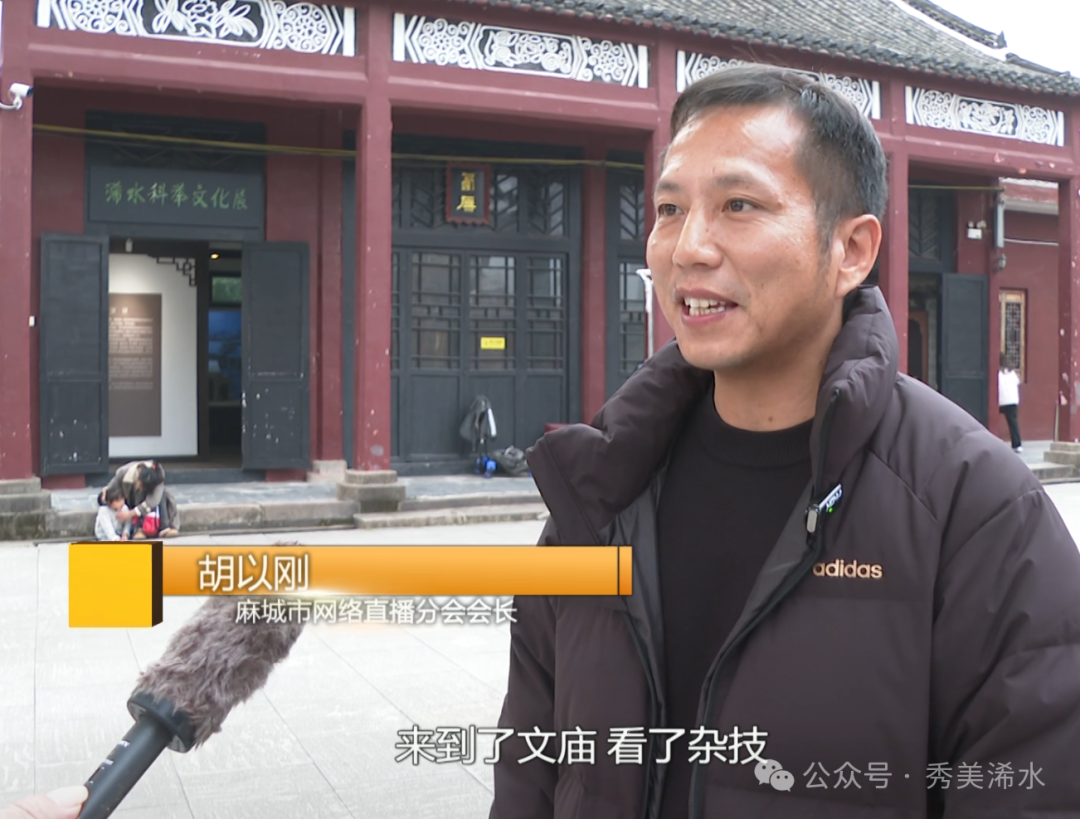 麻城市网络直播分会会长 胡以刚:今天很开心,来了浠水,来了文庙,看了杂技。浠水文庙见证了教育的文明和繁荣;杂技很震撼,每个人都拍了很多素材,回去我会用心地做视频内容,分享、展示浠水的文化与魅力。