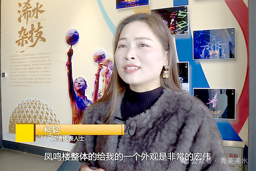 网络代表人士 柯轲:凤鸣楼,整体的外观非常宏伟,菜品色香味俱全,参观了代表性的文化,觉得咱们有义务去宣传。