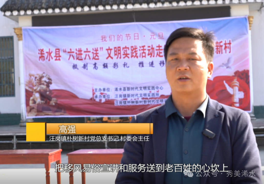 汪岗镇朴树新村党总支书记、村委会主任 高强:这次我们紧扣“六送六进”活动要求,把移风易俗宣讲和服务送到老百姓心坎上,把抵制高额彩礼从口号变成实际的行动。下一步,我们将从三个方面进行持续发力:持续宣传常态化;红白理事会常态化;示范带动常态化。