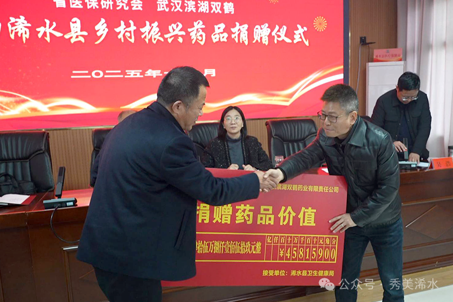 12月31日,湖北省医保研究会联合武汉滨湖双鹤药业股份有限公司,在我县举行药品捐赠仪式,向基层医疗机构定向捐赠价值45万余元的常用药品,以实际行动助力乡村振兴与健康乡村建设。