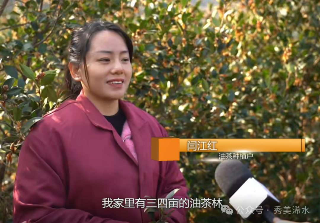 油茶种植户 闫江红:我家有三四亩的油茶林,以前我总是不懂,认为油茶林的枝越多,种的果就越好。后来经过专家的指导,教我修枝,让油茶林整个通风通光。今年,产量明显增高了,一亩增加了五六百斤,收入也增加了一两千块钱。家里还有几亩的荒田荒地,我计划明年都种上。