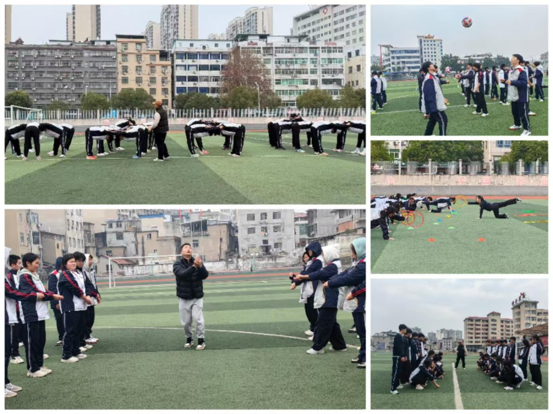 体育组教师聚焦学生运动能力与综合素养培育,各展所长、亮点纷呈:体育课堂创新教学形式,将音乐律动、趣味游戏融入快速跑、排球、铅球等专项教学,通过科学热身与专项激活,激发学生运动兴趣,在欢乐氛围中提升学生的速度、耐力等核心运动能力。