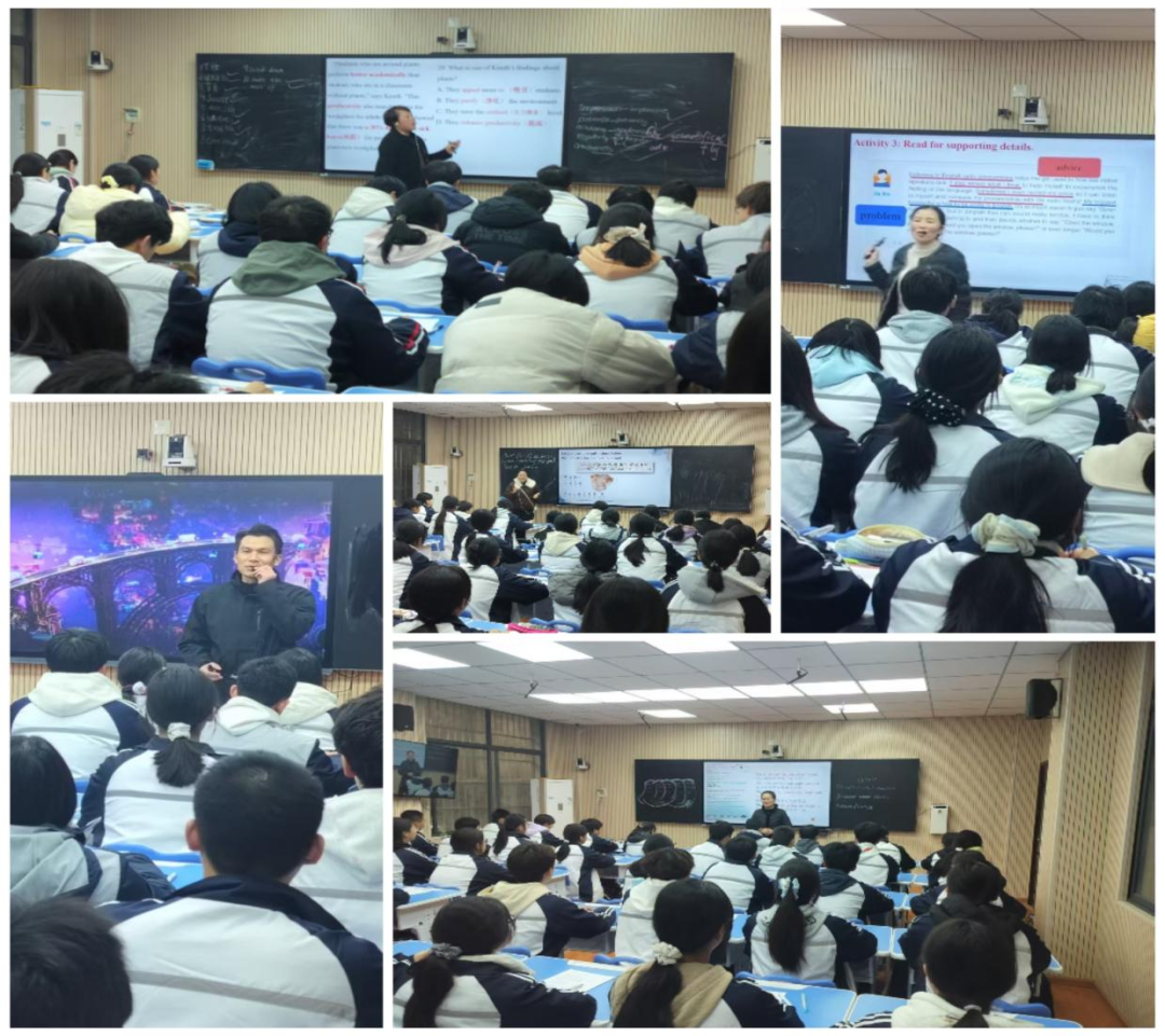政治课堂:蔡春明老师以中国主动融入世界发展趋势为载体,坚持立德树人根本任务,聚焦核心素养培育,通过教学活动增强学生的道路自信,培养开放思维与思辨精神,其幽默风趣的语言、自然流畅的师生互动让课堂充满活力。陈新华、成思琪老师的课堂坚持“三贴近”原则,从全球化机遇、风险、方案三个维度创新情境设计,以任务驱动、激趣启思,活用教材素材并深化拓展,通过“筑桥基、建桥墩、铺桥面”等形象化方式化繁为简、突破难点,独具匠心。