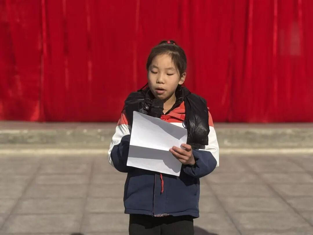 三年级和五年级学子带来表演歌曲《大中国》和经典诵读《少年中国说》,铿锵有力的歌声和诵读声回荡操场,既展现了经典文学的磅礴力量,更传递出少年应有的责任与担当,让在场者深受感染。