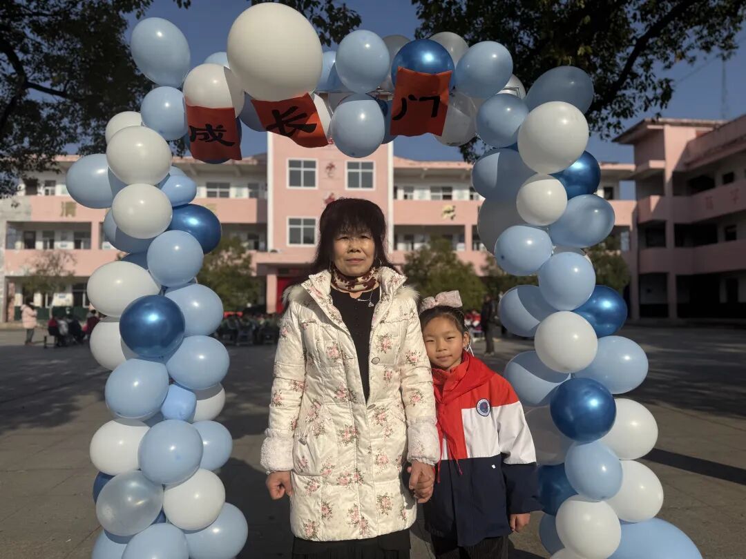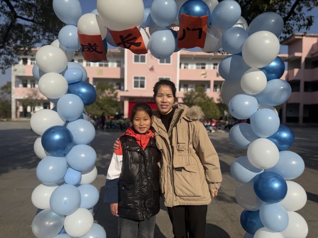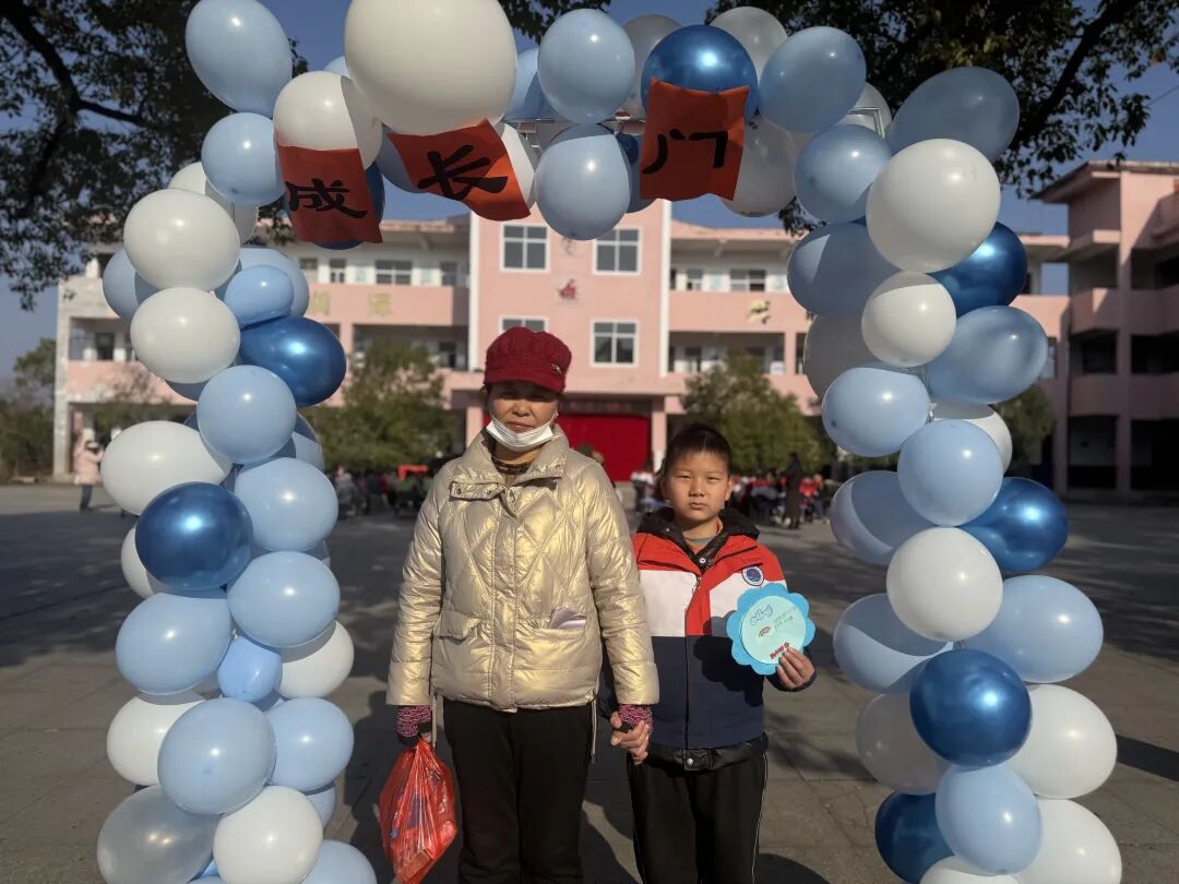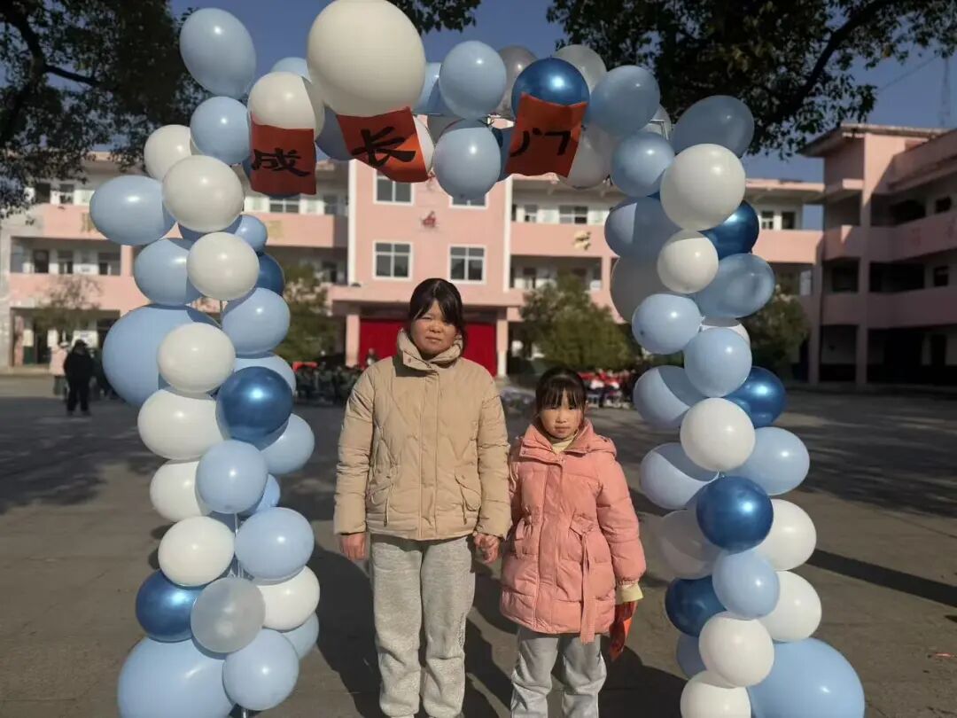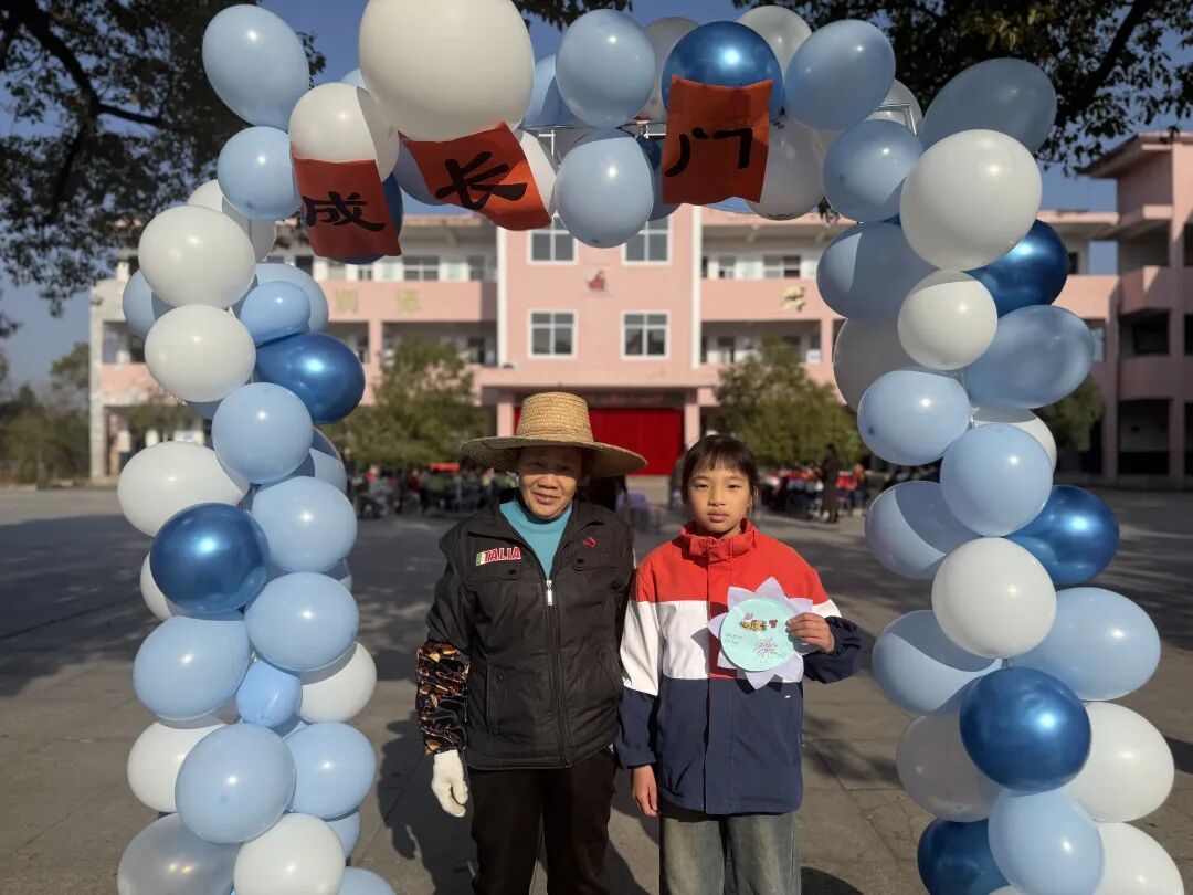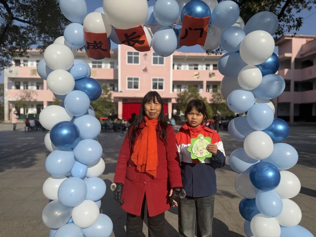 随后,主持人在操场登台致辞,点明活动主题与意义,正式拉开成长礼的帷幕。四年级学子,手持提前精心制作的“成长心愿卡”——卡片上满载个人成长期许与对家国的美好祝愿,与家长手牵着手,缓缓穿过“成长门”。穿过象征蜕变的大门后,亲子携手在签名板上郑重签下姓名,定格这一意义非凡的成长时刻,而后有序入座。