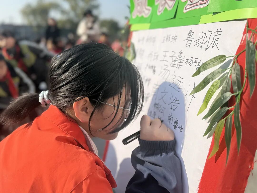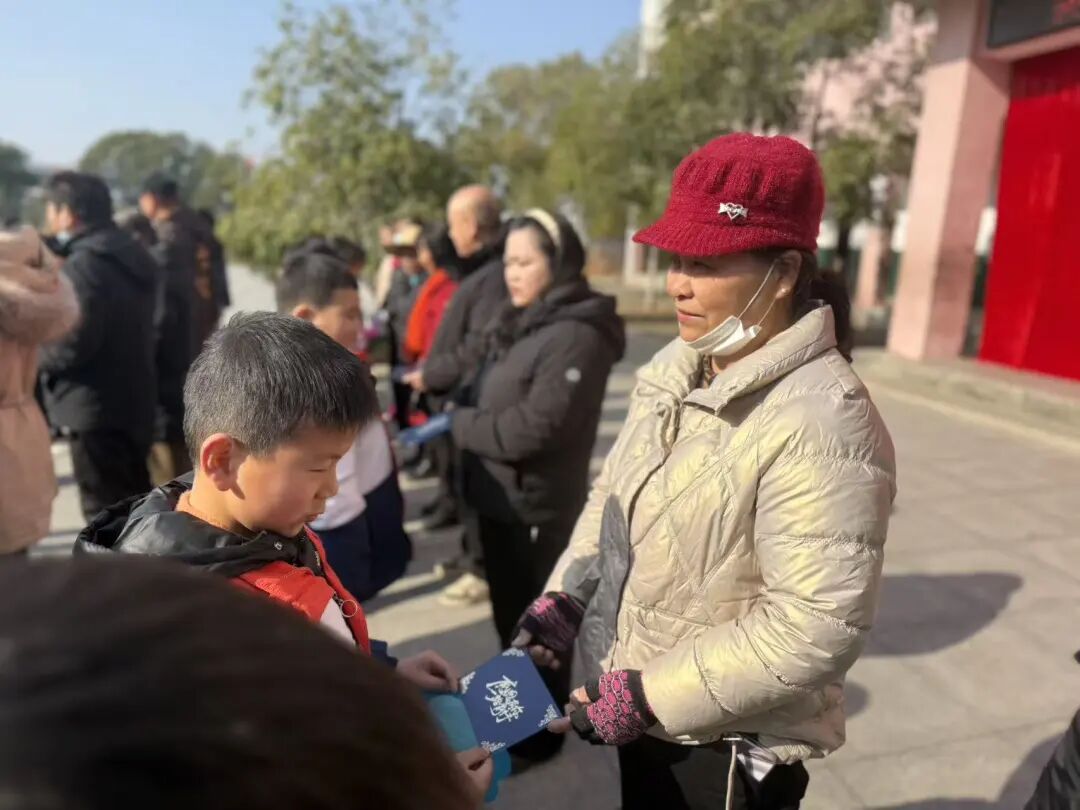 学子们面向师长与家长深深鞠躬,递上亲手制作的感恩卡,用最真挚的方式表达感恩之情。学生代表登台分享成长故事与心得,家长代表温情寄语,家校同心共话成长。随后,师生与家长共同系上“成长丝带”,丝线缠绕间,传递着责任与爱意;班主任送上成长祝福,鼓励孩子们坚守文化初心、勇担成长使命。
