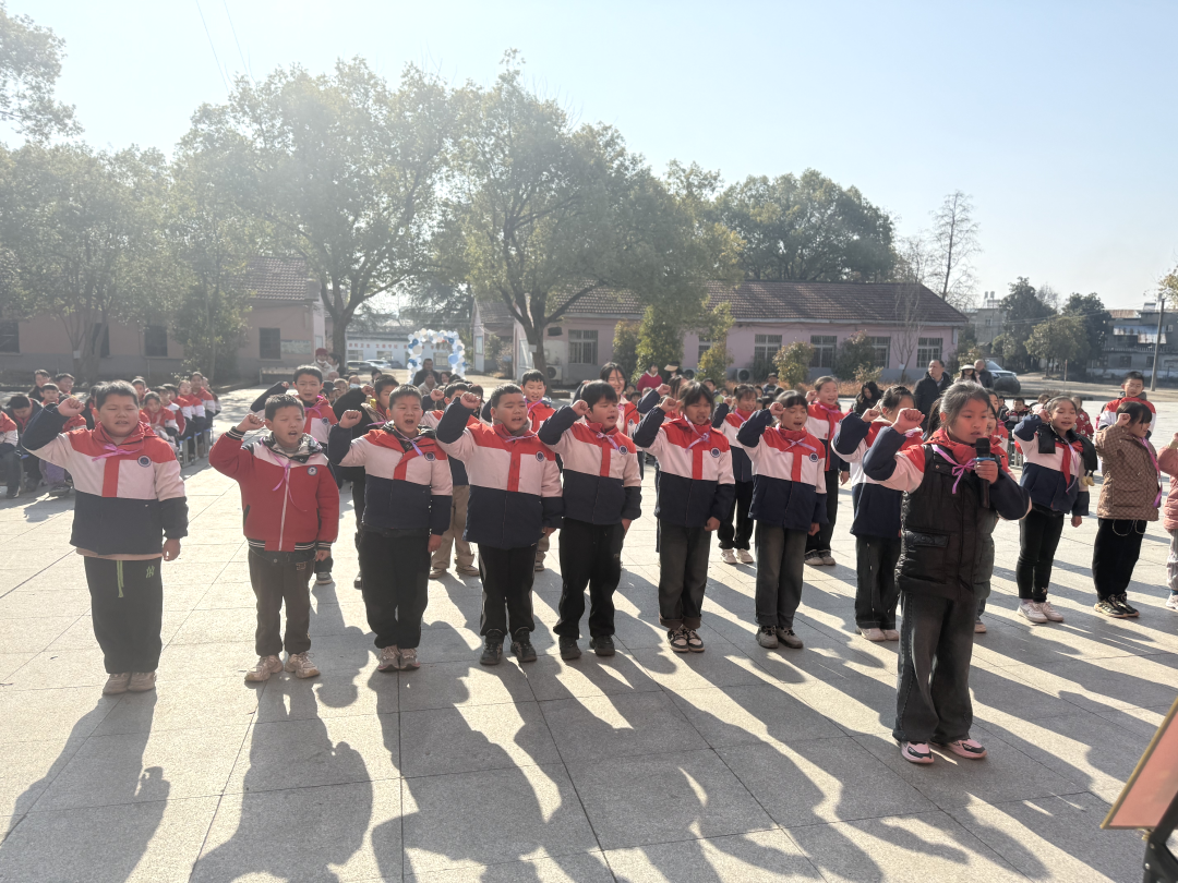 全体四年级学子举起右拳,在班长的带领下庄严宣誓,铮铮誓言响彻校园。