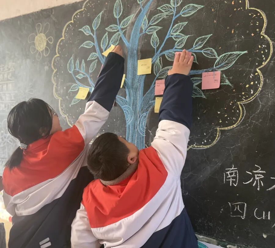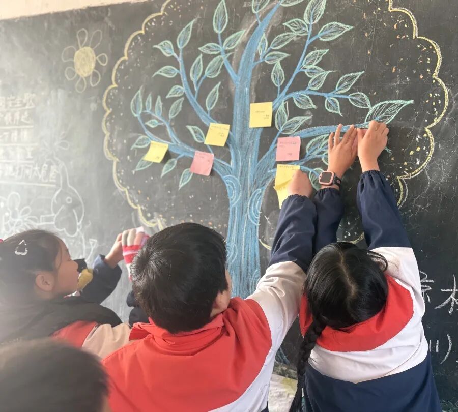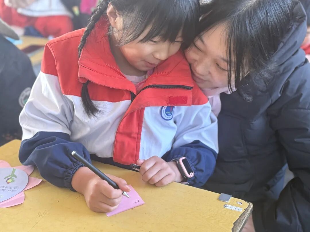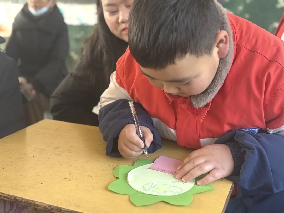 活动伊始,四年级教室循环播放学生成长视频与珍贵照片,一幕幕温馨瞬间勾起师生与家长的共同回忆。接着同学们在班级“成长树”上认真写下自己的理想与心声,亲手将卡片贴于树上。期间,孩子们还为父母唱响感恩之歌,稚嫩的歌声满含深情,打动了在场每一个人。最后,班主任对班级内的暖场活动流程进行总结。