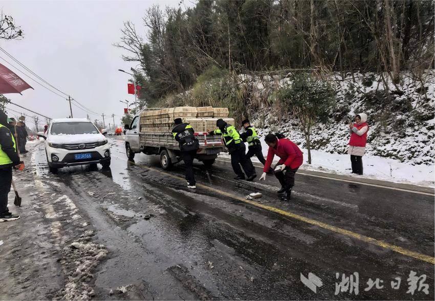 风雪无情,警民同心。上午8时许,清泉镇连二塘路一名老人因路面湿滑不慎摔倒,正在附近执勤的交警发现后,立即快步上前将老人小心扶起,仔细查看老人身体状况,同时迅速拨打120急救电话,全程陪同老人等待医护人员到场,直至将老人安全移交医护人员后才返回执勤岗位。早7时30分许,兰溪镇盐客树村路段一辆货车在上坡时因路面结冰出现打滑被困,兰溪水陆派出所民警巡逻发现后,立即组织过往群众一同合力推车,在凛冽寒风中齐心协力将货车推至安全路段,帮助司机化解困境。司机紧紧握住民警冻得通红的双手,连连表达感激之情。
