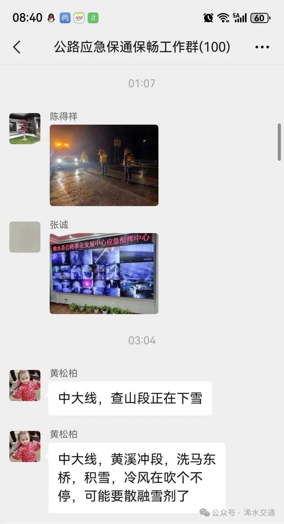 1月19日,今冬第一场雪悄然而至。浠水县交通运输局公路事业发展中心的微信工作群随即活跃起来——“正在下雪籽”“应急车辆已出发巡查”“中大线,洗马东桥积雪”……一条条信息串联起这个不眠的雪夜。