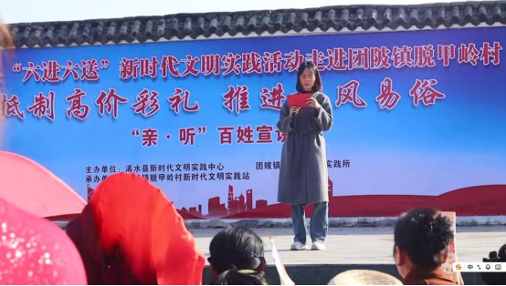 程秀秀不仅用自己的婚事诠释了爱情的真谛,更主动成为文明新风的传递者,她积极投身脱甲岭村开展的“抵制高价彩礼、倡导文明新风”主题活动。从活动流程的精心策划到现场的有序组织,她全程倾心投入,用热忱与责任为活动保驾护航。活动现场,她站上讲台,以自己的亲身经历为蓝本,娓娓讲述着与爱人摒弃世俗旧俗、坚守初心相爱的故事,分享着低彩礼婚姻里的幸福感悟。她的话语朴实无华,却饱含对爱情的敬畏、对新风的推崇,呼吁大家挣脱“彩礼绑架”,让婚姻回归爱与陪伴的本质,真挚的分享引发了现场村民的强烈共鸣,也让低彩礼、重情义的种子,在每个人心中悄然生根。