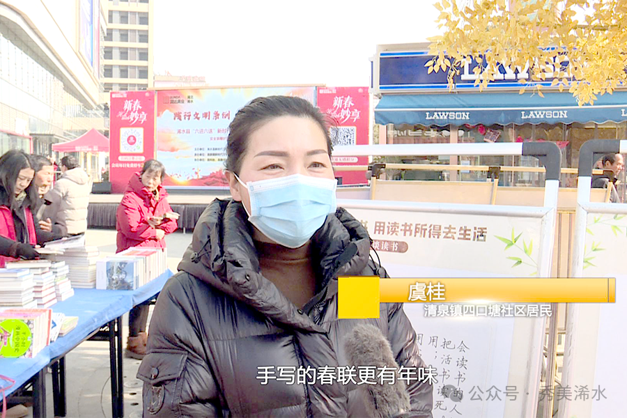 清泉镇四口塘社区居民 虞桂:今天在家门口领到了春联,手写的春联更有年味,孩子还能体验书法,既领到了祝福,也感受到了传统文化的魅力。