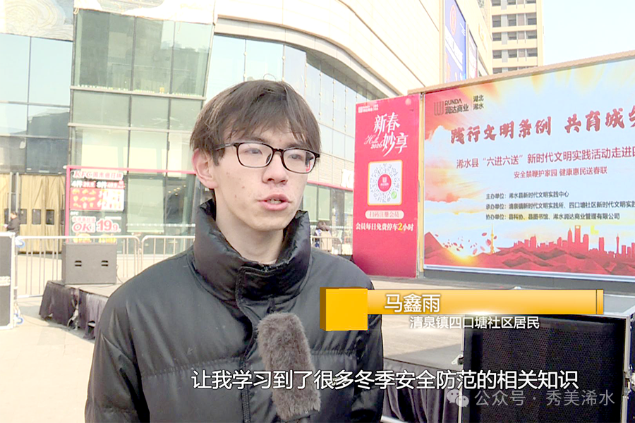 清泉镇四口塘社区居民 马鑫雨:今天的活动,不仅有特色节目还有知识宣传科普,最后的科普演讲让我学习到了很多冬季安全防范的相关知识,“六进六送”活动非常有意义。
