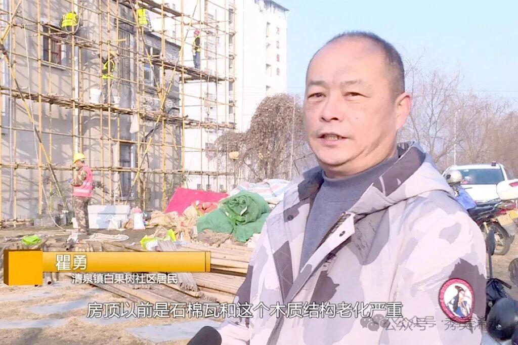 清泉镇白果树社区居民 瞿勇:小区房顶以前是石棉瓦和木质结构,老化严重。改造后我们将生活在一个更加漂亮舒适的环境里,幸福感满满。