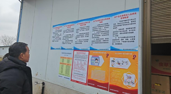 在排查的同时,中心大力开展普法宣传与技术指导,向养殖场(户)张贴并发放《农产品农兽药投入品使用管理制度》《农产品农兽药残留检测与处置制度》《禁停用兽药名录》《科学合理使用抗菌药物宣传挂图》等宣传资料共计5000多份,引导养殖者增强质量安全主体责任意识,规范养殖行为。