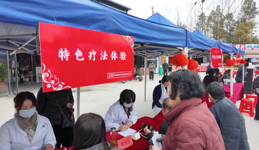 健康体验区中,中医师免费提供体质辨识、冬令进补指导,耳穴压豆、艾灸、肩颈推拿等养生服务有序开展,温热的节气代茶饮驱散冬日寒意,传递健康关怀。
