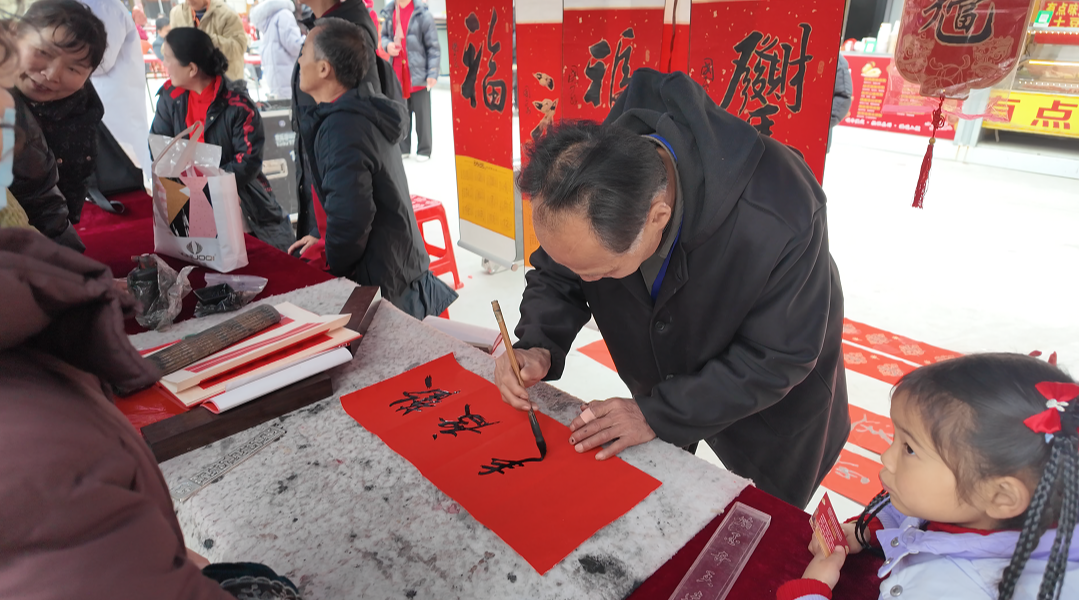 创意市集区里,养生汤料包、冬令膏方等药食同源年货琳琅满目,书法家现场书写赠送对联、福字,墨香年味交织。