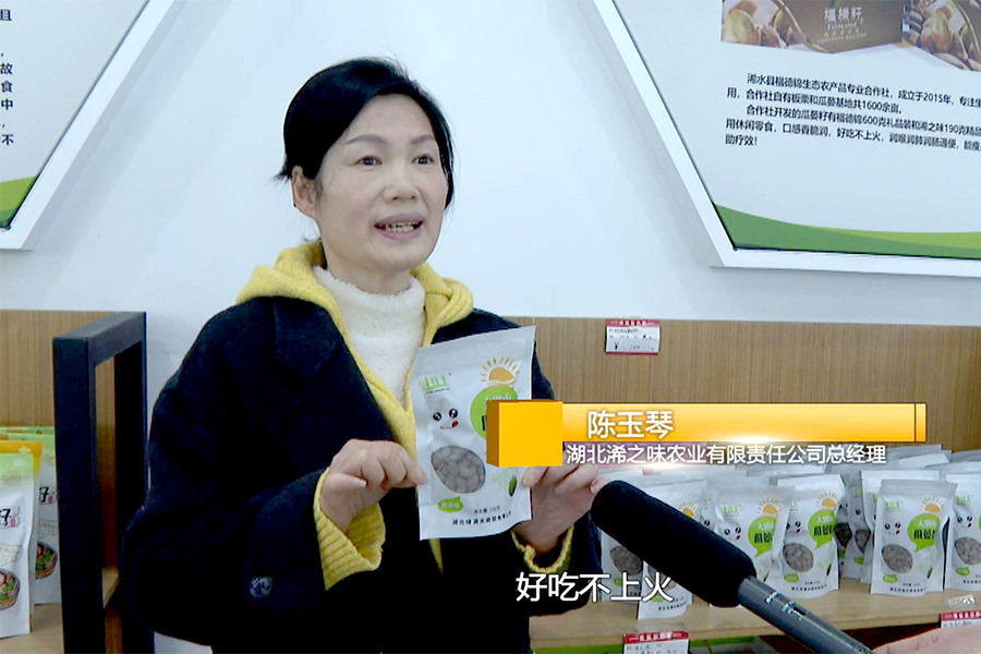 湖北浠之味农业有限责任公司总经理 陈玉琴:我们的瓜蒌子,药食同源,好吃不上火,一年四季都能嗑,新春佳节,送亲人、送朋友,体面又走心,年味十足。