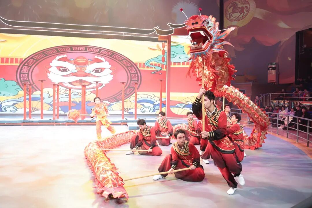 晚会在激昂的鼓点中拉开序幕。杂技《龙狮闹春》龙狮腾跃、灵动威猛,开场舞《骏马迎春》舞姿矫健、寓意奔腾,迅速点燃现场气氛。