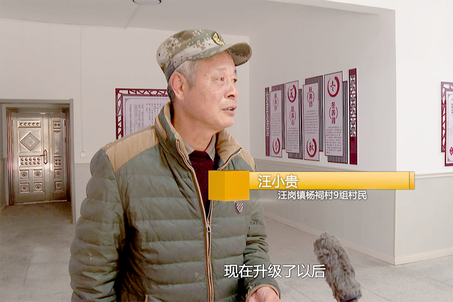 汪岗镇杨祠村9组村民 汪小贵:原来这是个大破房子,什么设施都没有,常年只有一个医生,现在升级了以后,房子都装修了,医生也调来了,也干净了,床铺又多,又可以报销,在这里大小病都可以看,现在方便我们老百姓了。