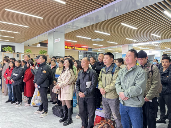 作为劳务输出大县,浠水县每年外出务工人员数量众多。为切实保障务工人员顺利返岗,县总工会提前谋划、主动作为,联合武汉车站浠水南站等相关部门,精准摸排务工人员出行需求,筹措资金10万余元为122名赴深圳方向务工人员统一协调购票、规划行程,以“点对点、一站式”的暖心服务。浠水南站开通专用安检通道和候车室,安排专人全程引导、提前放行,确保他们顺利登车、平安返岗,切实打通务工人员返岗复工“最后一公里”。