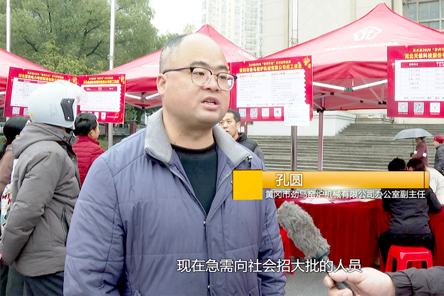黄冈市劲马窑炉机械有限公司办公室副主任 孔圆:目前我们公司接了大批订单,现在急需向社会招大批的人员,自动化控制的设计人员、绘图的设计人员各需要5人,招收大量的电焊工、电焊工学徒,今天有蛮多人在我们公司展位上咨询,现在填表了十来个,(招聘)效果还是挺好的。