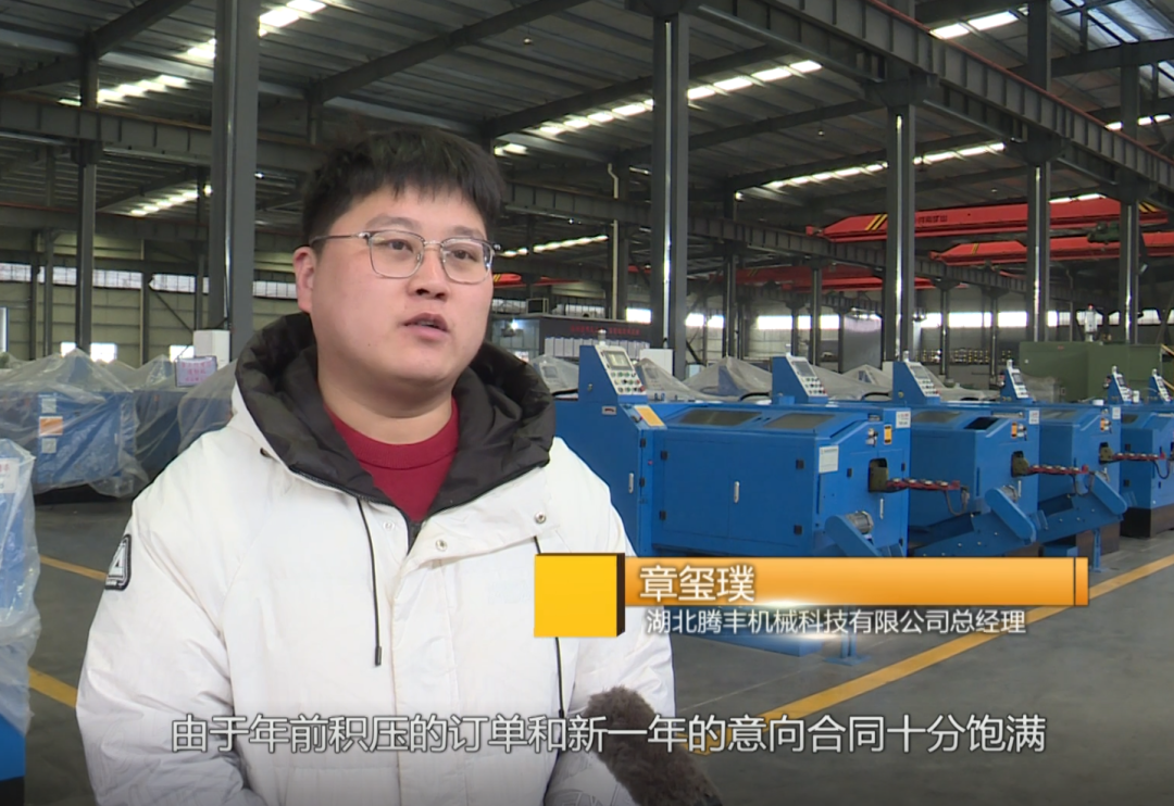 湖北腾丰机械科技有限公司总经理 章玺璞:得益于县里的精准帮扶,我们的工期比原计划提前了,目前三期工程进展顺利,预计将在今年年中全面投产,专门用于新型智能设备的规模化生产。
