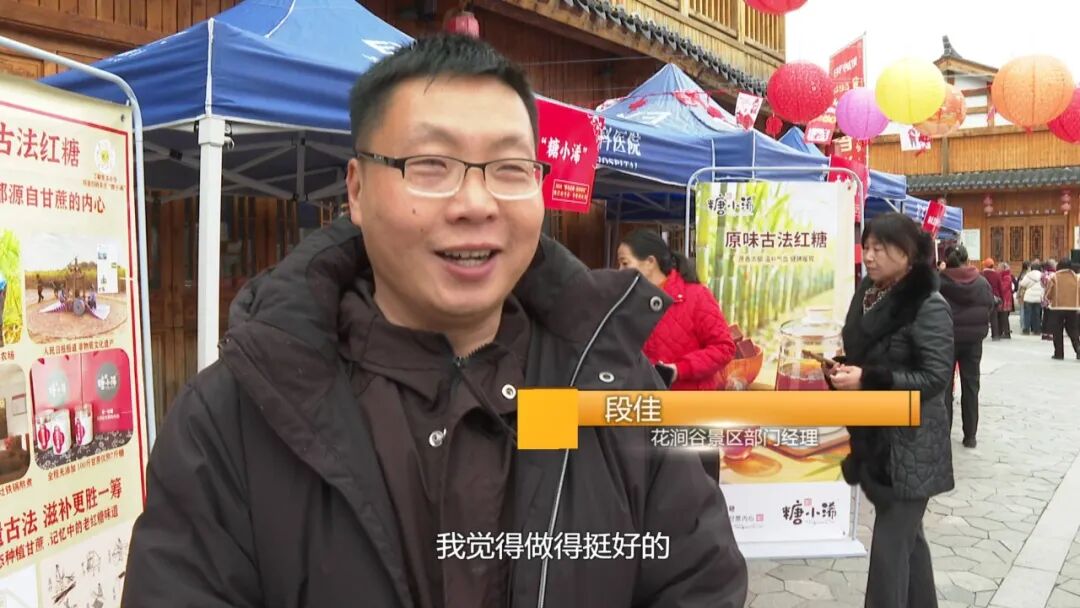 花涧谷 景区部门经理 段佳:今天书香闹元宵的活动做得挺好的,我们作为非遗古法红糖“糖小浠”参加了这次闹元宵活动的展销,现场有很多游客来品尝我们的红糖,效果很不错。