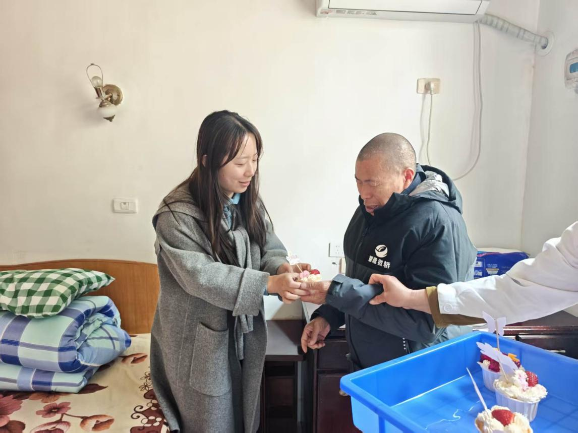 活动现场,女职工们在专业烘焙老师指导下分组制作糕点,欢声笑语中,一盘盘金黄松软的糕点新鲜出炉。随后,女职工们邀请老人们齐聚活动室,唠家常、品甜点,暖意融融。针对行动不便的高龄老人,女职工组成“送糕小分队”,将亲手制作的糕点送到老人床前,送上节日问候与美好祝福,老人们纷纷点赞致谢。