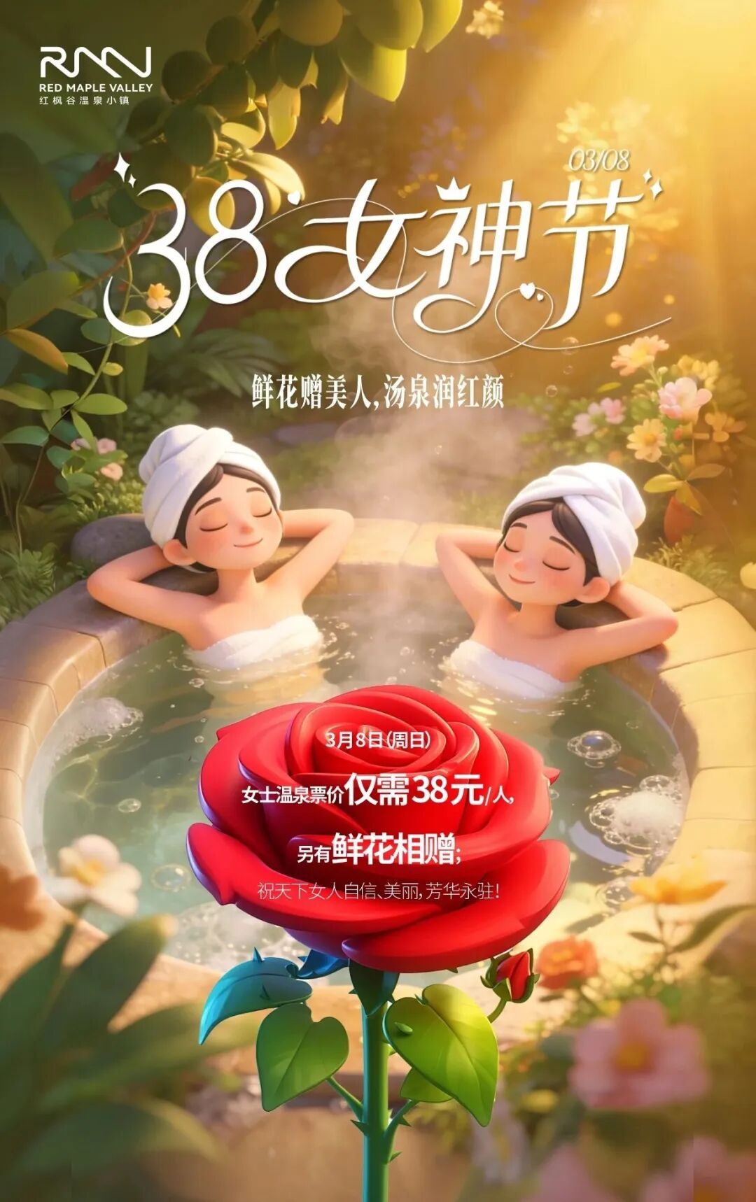 🌸女性游客可享38元/位的温泉福利。