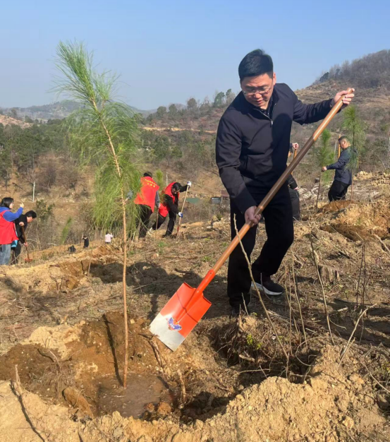 春和景明,万物勃发。在第48个植树节来临之际,浠水县县直机关义务植树活动在竹瓦镇朱店村开展。近700名干部职工齐聚山间,以实际行动播撒绿色希望,为支点建设描绘生态画卷,汇聚起生态文明建设的磅礴力量。