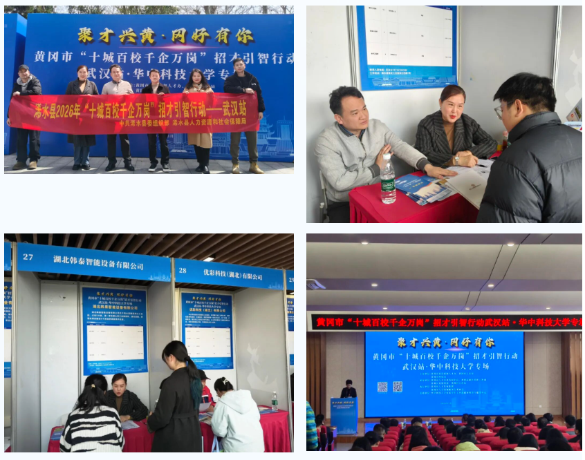 3月19日至23日,中共浠水县委组织部、浠水县人力资源和社会保障局组织湖北韩泰智能设备有限公司、优彩科技(湖北)有限公司、湖北鑫威机床股份有限公司、湖北晨科农牧集团股份有限公司等重点企业,先后赴华中农业大学、华中科技大学、武汉工程大学,开展2026年浠水县“十城百校千企万岗”就业促进专项行动,取得阶段性成效。 三场活动,精准对接 3月19日 华中农业大学 聚焦现代农业、农产品加工及生物科技等领域,组织县内农业产业化龙头企业、重点涉农企业参会,与涉农专业毕业生开展精准对接,现场交流踊跃。 3月21日 华中科技大学 随黄冈市“十城百校千企万岗”招才引智团队走进华中科技大学,通过城市推介、政策宣讲、现场洽谈等形式,全面展示浠水产业发展前景和人才引进政策,吸引众多学子驻足咨询。 3月23日 武汉工程大学 针对化工、材料、智能制造等工科专业,组织相关企事业单位设立招聘专区,企业HR与毕业生面对面交流岗位需求、职业发展路径,达成多项就业意向。 三场活动累计提供优质岗位200余个,涵盖现代农业、智能制造、生物医药、新材料等多个重点产业领域,现场达成初步就业意向近百人,有效搭建了校企对接平台。 持续发力 服务人才 4月中旬,浠水还将到湖南高校参加“十城百校千企万岗”招才引智招聘活动。下一步,县委组织部、县人社局将进一步拓展校企合作渠道,优化人才服务保障,推动更多高校毕业生来浠就业创业,为县域经济高质量发展注入人才动能。 请广大求职者持续关注“浠水人社”微信公众号及“黄冈就业”小程序,岗位信息、政策解读等就业服务内容将动态更新、及时上线。各乡镇、村(社区)同步推送活动最新动态,推动就业信息直达基层、入户到人,确保有就业意愿的返乡人员及时获取岗位资讯、便捷参与招聘活动,全力保障群众在家门口实现稳定就业。 工作人员联系方式:4267880、4267990 未来浠水还有哪些招聘活动预告来啦浠水县“六进六送”新时代文明实践活动暨竹瓦镇第三届桃花汇活动现场招聘会 活动时间:2026年3月27日上午9:00活动地点: 团陂伍峰坳首届桃花荟招聘与返乡创业推介 活动时间:2026年3月25日(周三)8:30-16:00(若遇雨天,顺延至下周日,提前通知)活动地点:浠水县伍峰坳栋望家庭农场(导航可直达,现场设置指引牌)