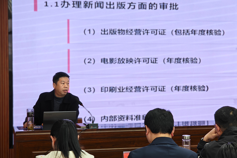 活动中,县委宣传部出版版权股两名干部走上讲台,立足岗位实际,分别以《稳步推进新闻出版工作》为题,从充分认识做好新闻出版工作的重要意义、全面把握县委宣传部新闻出版职能、脚踏实地推进新闻出版各项工作、齐心协力分工合作抓好当前工作等四个方面,系统阐述推动新闻出版工作高质量发展的思考和实践;以《弘扬新风正气 扫除文化垃圾》为题,重点聚焦“扫黄打非”工作,深入阐述其涵义意义、重点任务、主要职责、具体行动等,并紧扣工作存在的难点问题提出思考和建议。授课既有对理论政策的精准把握,也有对具体实践的深刻剖析。