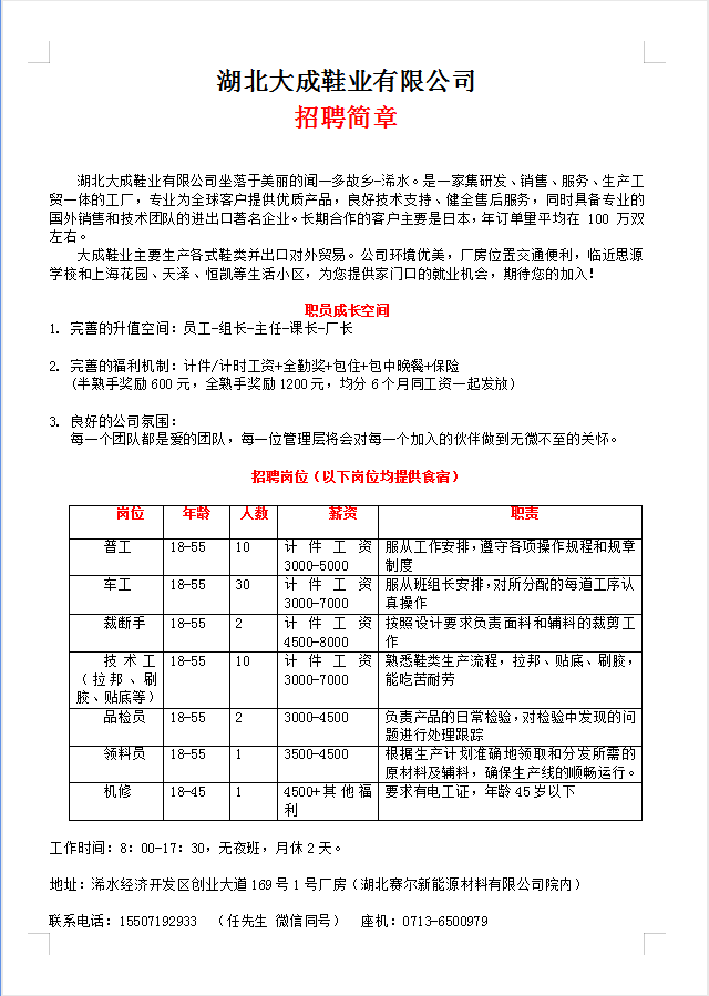 附:相关企业招聘简章